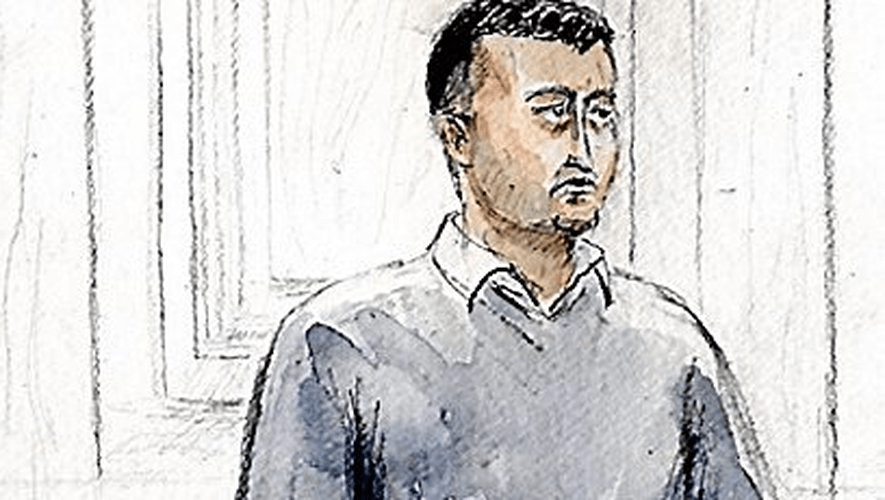 Adil Sfih, trentenaire biterrois accusé d’avoir tué, d’un tir de chevrotine, Yassin El Guechati, alors âgé de 19 ans, ce soir du 10 mars 2006 au bas de la rampe des Poilus, à Béziers. (Croquis d’audience – Aline Champsaur)
