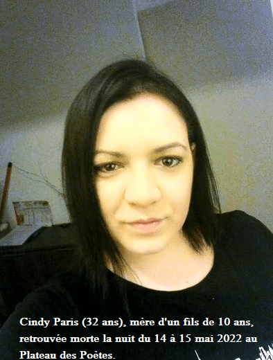Dans la nuit de samedi 14 mai à dimanche 15 mai 2022, Cindy Paris a été retrouvée morte au plateau des Poètes, entre les Allées Paul Riquet et la gare SNCF. Elle a été battue et étranglée.