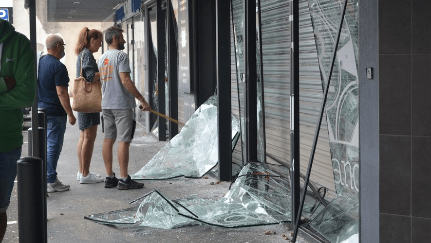 Les vitrines des commerces de La Grangette ont été caillassées avec des pavés énormes. (Midi Libre – Mélissa Alcoléa)