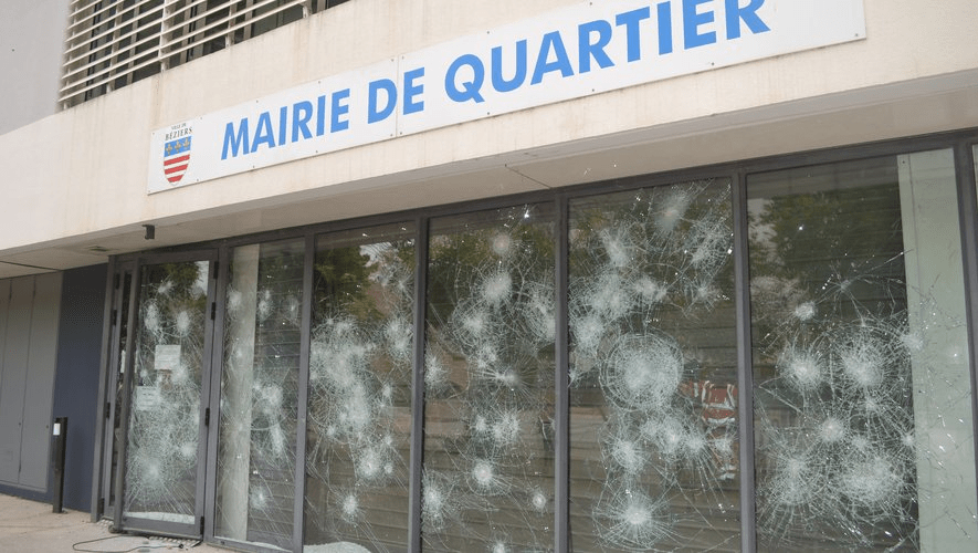 Le bilan matériel est lourd : abribus détruits, Mission locale du Biterrois dégradée après intrusion, Maison de quartier et centre social Albert-Camus (intrusion et début d’incendie), mairie annexe du quartier (intrusion et dégradations), bureaux du plan local d’insertion et commerces de la “Fraîcheur” (les vitrines d’un bar tabac, d’une pharmacie, d’une boulangerie et d’un opticien) vandalisés, containers incendiés, quatre voitures de l’OPH brûlées, … .