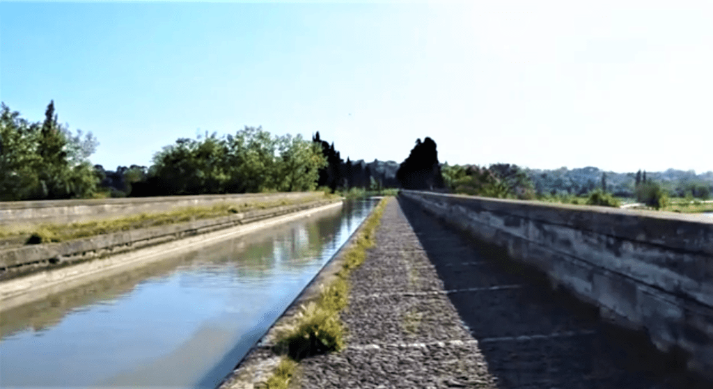 Une fois les 9 écluses de Béziers franchies, nous pouvons apercevoir la pente d’eau de Fonsérannes : “Elle servait à tracter les bateaux, qui étaient tirés à la force du jarret, qu’il soit humain ou animal.” À ce moment de la balade, “nous sommes dans une partie non-creusée, qui tient avec des digues. C’est d’ailleurs pour cette raison qu’il y a des cyprès sur la berge, leurs longues racines font office d’armature et cela fait plus de 200 ans que les digues sont en place. Encore une idée de nos anciens !”