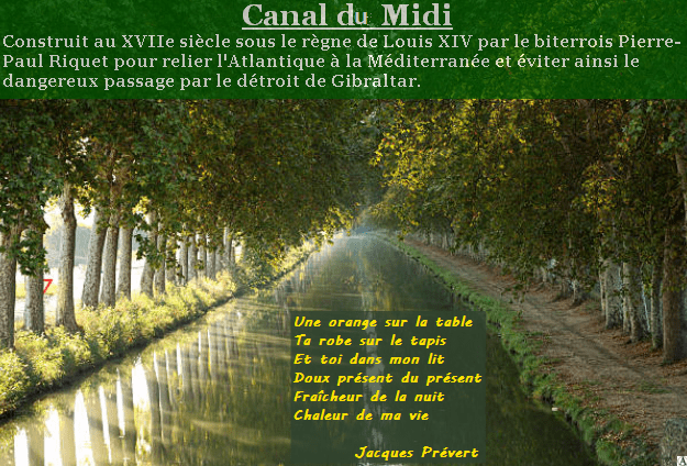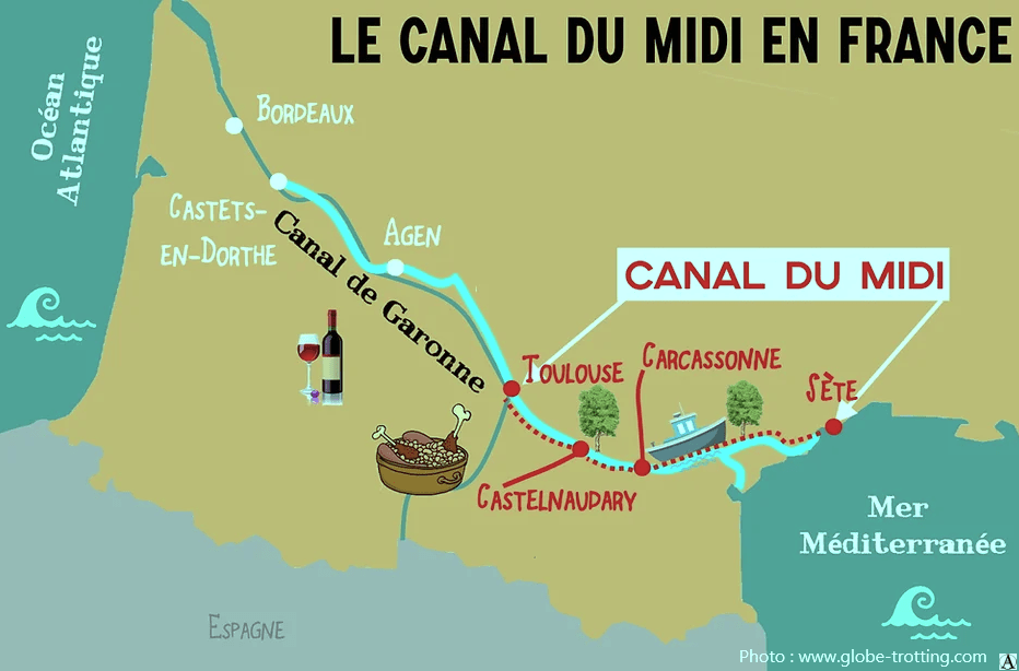 Il est le plus ancien canal d’Europe encore en fonctionnement. D’une longueur de 240 km entre Toulouse et la mer Méditerranée, le canal du Midi constitua le plus vaste chantier de son époque et reste une des plus grandes réalisations du génie civil.