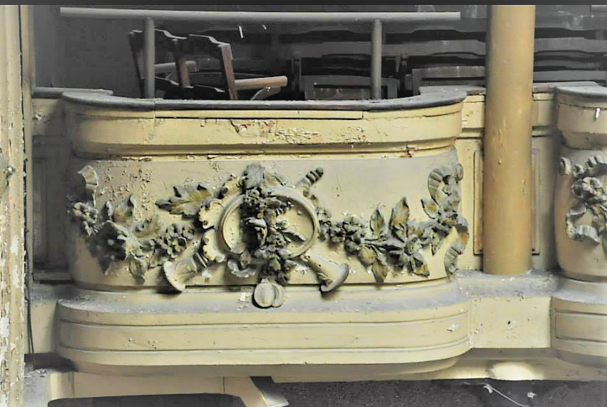 Fermé et en vente depuis des années, il peine à trouver un acheteur. Les propriétaires ont réalisé des travaux de mise hors d’eau et les restaurations des gypseries qui avaient été dégradées. La démolition en cours de la façade plaquée dans les années 1950 va permettre de retrouver l’aspect original.