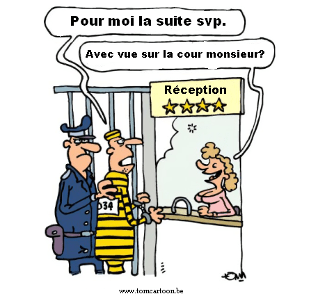 Blague : “La semaine dernière, j’avais encore tout”, a-t-il dit. “Un cuisinier préparait ma nourriture, une chambre avec télévision et radio, je pouvais faire du café ou du thé, mes vêtements étaient lavés, je pouvais aller chez le médecin, le dentiste, etc. gratuitement et j’avais un toit au-dessus de la tête.” “Mais qu’est-ce qui est arrivé? Votre femme vous a quitté, c’est du business ou … “Non, non”, répondit-il, “J’ai simplement été libéré de prison.”