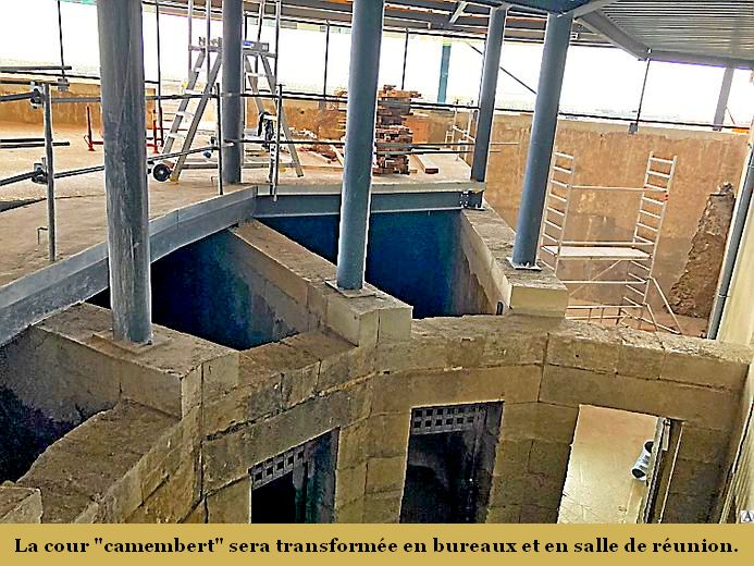 Les travaux se font sous l’œil attentif de l’architecte des bâtiments de France qui a donné l’autorisation d’agrandir les fenêtres, de poser un escalier de secours en extérieur ou encore de couvrir cette fameuse cour camembert.