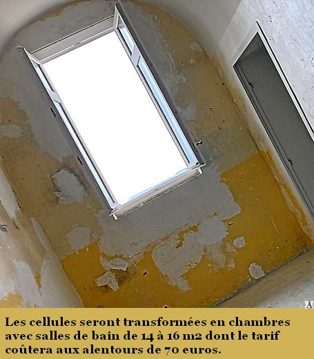 Le chantier a démarré au printemps 2022 et la métamorphose est déjà éloquente. Même si “nous voulons préserver un maximum de l’identité historique du lieu”. à commencer par la transformation des cellules en chambre et la conservation de la structure de la cour “camembert” qui servait de lieu de promenade aux anciens détenus. Peut-être, même, garder certaines des inscriptions gravées sur les murs par les prisonniers.