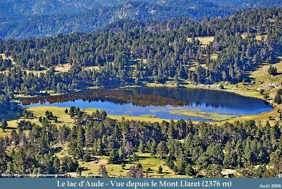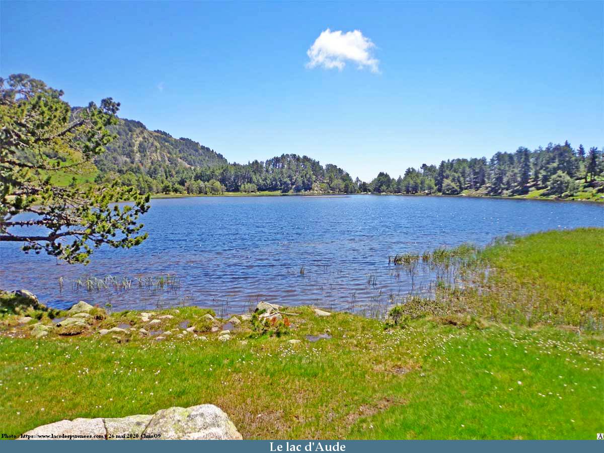 Le lac d’Aude (en catalan: estany d’Auda) 2136 m et 3 ha au pied du Roc d’Aude 2377m sur la commune des Angles. Ce n’est qu’un petit marécage qui donne naissance à la rivière Aude, qui reçoit successivement sur sa rive gauche: la Lladure descendant des lacs de Camporeils, la Galbe venant de l’étang du Diable, la Bruyante qui rassemble les eaux des lacs du Donezan et le Rebenty.