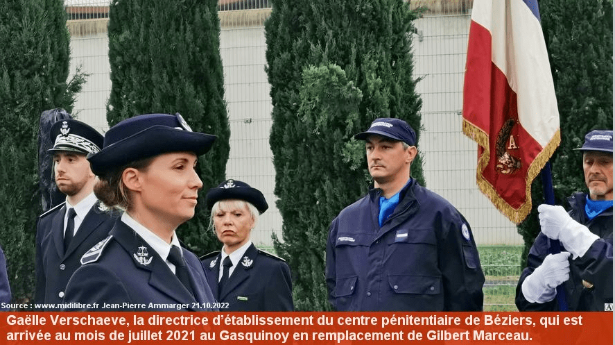 Ce jeudi 20 octobre, Stéphane Gély, le directeur interrégional des services pénitentiaires de Toulouse, a officiellement installé à son poste de cheffe d’établissement du centre pénitentiaire de Béziers Gaëlle Verschaeve, qui est arrivée au mois de juillet 2021 au Gasquinoy en remplacement de Gilbert Marceau.