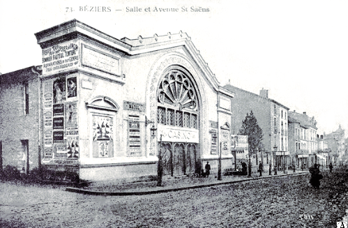 En 1880, sur l’avenue de Bessan, l’actuelle avenue Saint-Saëns, a été construite une salle de spectacle nommée L’Excelsior Palace. En 1900, elle a été rebaptisée Alhambra Casino, et le public pouvait assister à des spectacles légers. En 1923, après d’importants réaménagements, la salle est devenue Maison de la mutualité, puis Maison du peuple. Elle a beaucoup servi pour des réunions, des débats politiques, des combats de boxe, de judo ou de catch. Les comités d’entreprises biterroises pouvaient réserver la salle en période de l’Avent afin d’organiser des goûters de Noël des enfants du personnel. Elle a été détruite au début des années 1960, sous la municipalité d’Émile Claparède, pour laisser la place au palais des congrès actuel.Sources et illustration : Prospérité d’hier, Béziers, viticulture et commerce au travers de cartes postales anciennes, de Maryse Triaire et Pierre Lavau, aux Éditions du Mont.