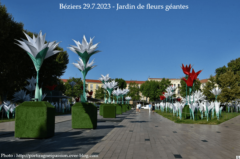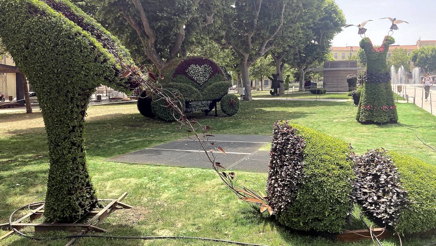 La Place Jean-Jaurès se pare de ses décorations estivales … végétales. (Midi Libre – Antonia Jimenez)