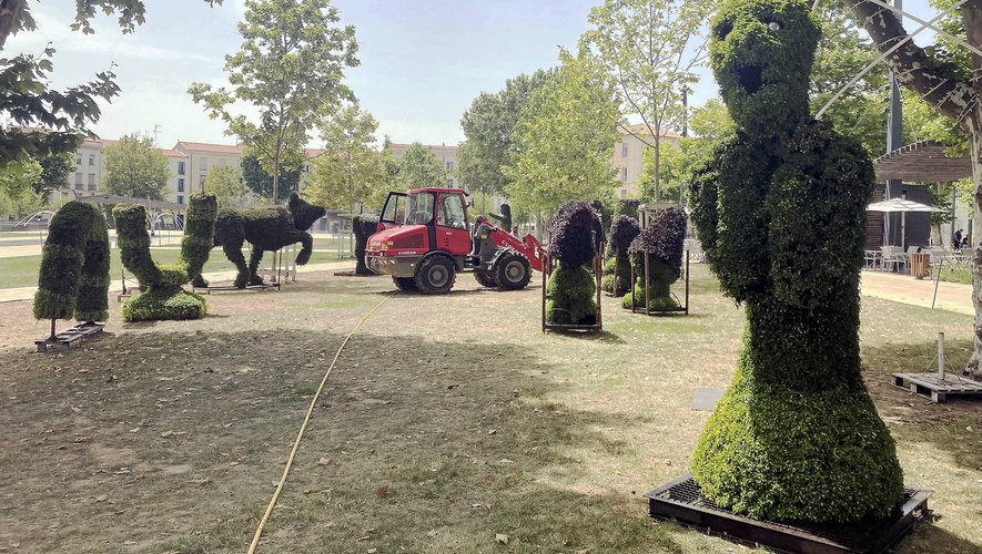 Les trente topiaires, ou sculptures végétales, réalisées par l’entreprise Structural 3D, du Maine-et-Loire, sont l’œuvre d’une collaboration entre un sculpteur – pour l’ossature en fer – et un paysagiste – pour l’ornement végétal. “Ce sont des végétaux vivants, avec arrosage intégré, qui poussent. Ils seront donc taillés toutes les semaines.”