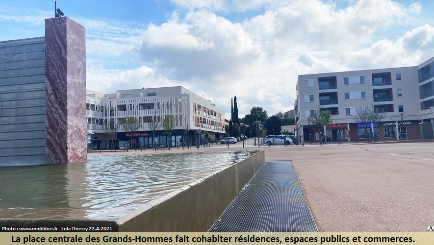 La place des grands-hommes se prolonge par des bassins et un ruisseau avant de finir dans un parc disposant d’une aire de jeux (Midi Libre – Sid Mokhtari)