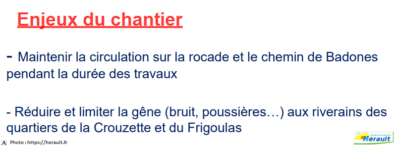 “Des enjeux majeurs qu’il faut relever car cet axe, qui relie Montpellier à Albi via Béziers, assure à la fois les fonctions de voie d’évitement pour Béziers, de liaison de l’A75 vers le Narbonnais, et de desserte vers les communes alentour et une partie des hauts cantons. Notre objectif est également d’adapter le territoire à la conjoncture économique et démographique, avec une population qui augmente d’année en année”, indique Kléber Mesquida, président du Département.