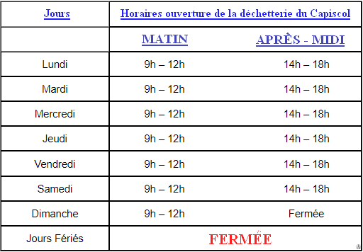 Comma à Capiscole … mêmes horaires … mêmes services. (voir ci-dessous)