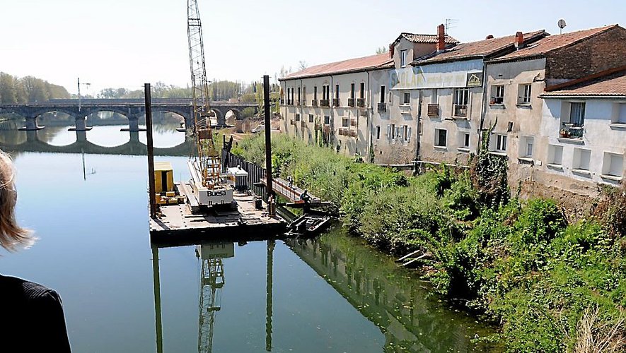 Cette première tranche achevée, le maître d’ouvrage, le syndicat intercommunal de travaux pour l’aménagement de l’Orb entre Béziers et la mer, attaque la deuxième. Elle concerne cette fois le tronçon de berge compris entre le pont Neuf et le pont SNCF. Une barge a été installée le long de la rive, avec une grue, pour planter les palplanches (pieux en fer) qui garantissent le maintien de la rive et des bâtiments.
