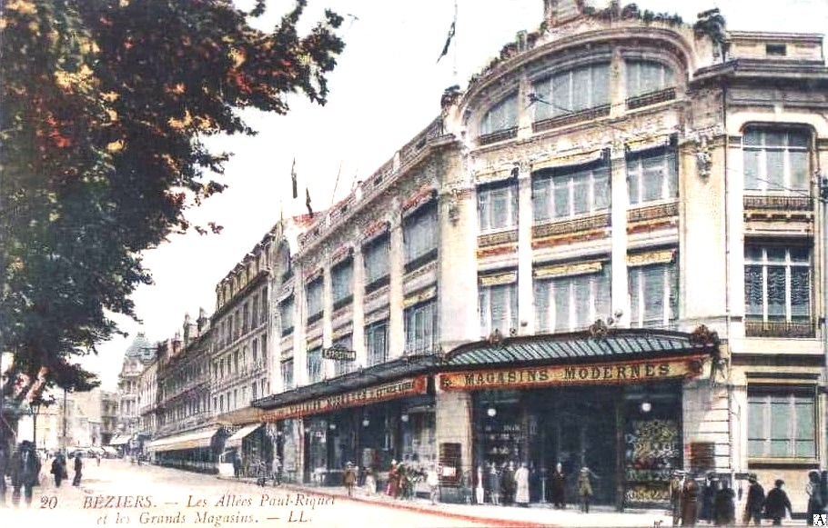 Nous sommes en 1908. Sur le haut des allées Paul-Riquet, un attroupement s’est formé à la hauteur des numéros 9 et 11. Les Biterrois regardent avec tristesse et consternation la destruction de la Villa Saint-Pierre. Construite par l’architecte Carlier, également appelée “Villa des Fleurs” ou “Château Bellaud”, du nom de ses propriétaires, elle va céder la place aux Magasins Modernes, ancêtres des Galeries Lafayette. L’événement fait grand bruit.