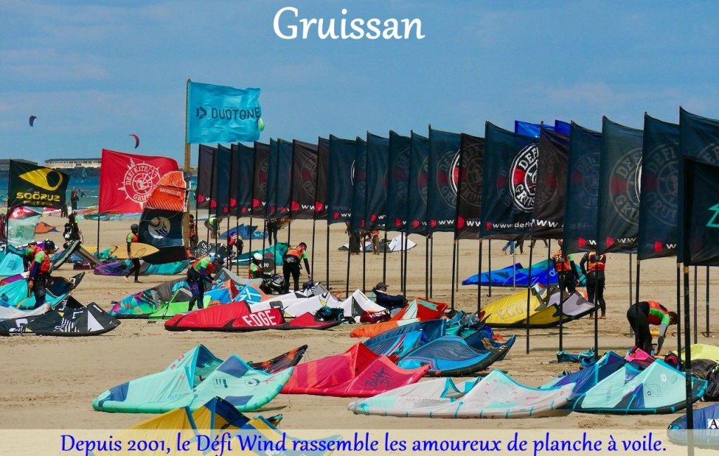Gruissan est particulièrement connu pour la plage des Chalets au sud, avec ses 150m de large et 2km de long.