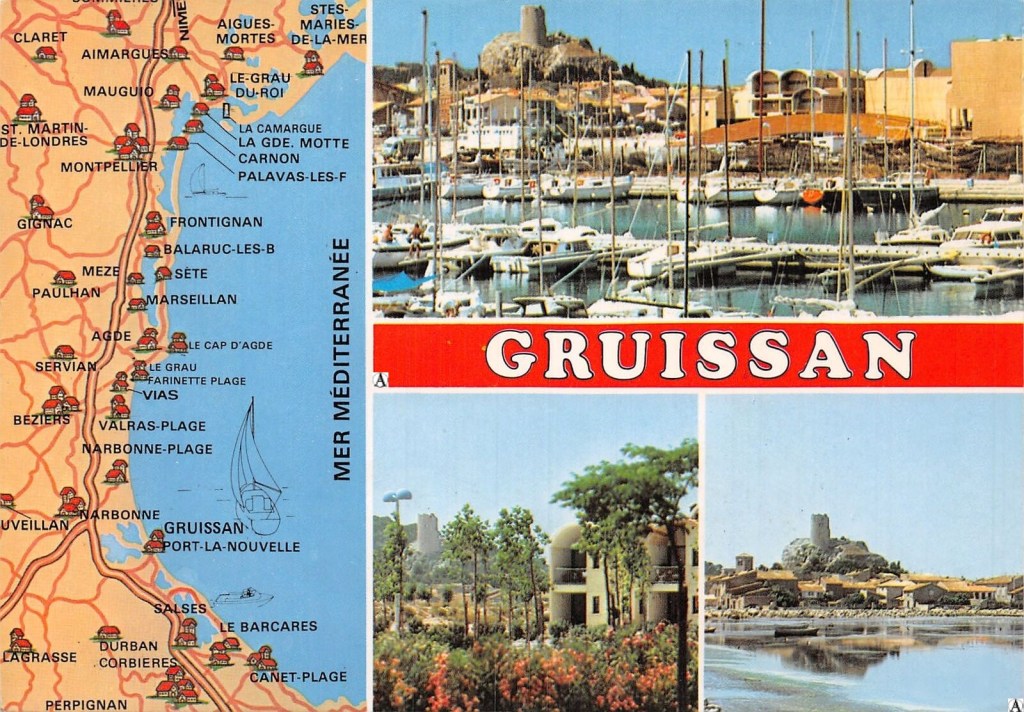 La commune de Gruissan se situe dans le département de l’Aude en région Occitanie. Elle est délimitée par le massif de Clape et la mer Méditerranée. Gruissan se situe à une quinzaine de kilomètres de Narbonne. Gruissan est par ailleurs à environ 70 km de Cap d’Agde et du Barcarès.