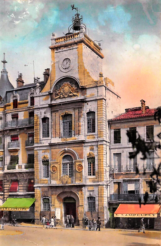 La reconstruction de l’édifice sur l’emplacement de l’ancien hôtel de ville, fut décidée par délibération du 3 décembre 1730. Les plans de l’architecte Cadas furent adoptés en 1741. L’édifice, y compris la tour qui le domine, fut terminé et inauguré le 15 août 1746. Son emplacement a toujours été destiné à la vie politique de la citée, car c’était ici que les romains avaient installé le forum de leur colonie Julia Baetarrae (Place Gabriel Péri – Place du Forum).