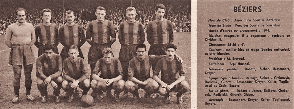 Malgré une brève apparition en Division 2 en 1934, ce n’est qu’après la Seconde Guerre Mondiale que le club biterrois va se faire connaître.
