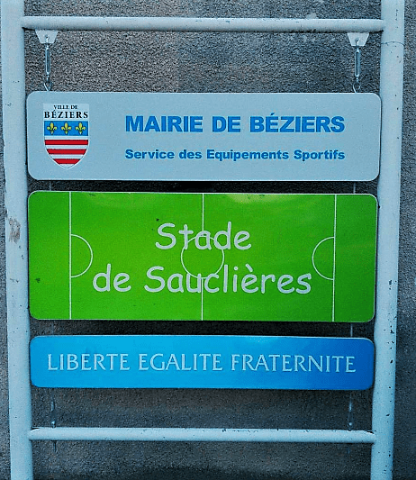 C’est un terrain coincé entre les bords de l’Orb et le canal du Midi qui fera office à partir de 1913 de stade pour la nouvelle société. Là, à Sauclières, on aménage un terrain d’honneur pour les rugbymen, mais aussi un terrain annexe équipé d’une piste d’athlétisme et quelques courts de tennis. L’ASB est pensé comme un club omnisports, même si le rugby éclipse bientôt les autres sections.