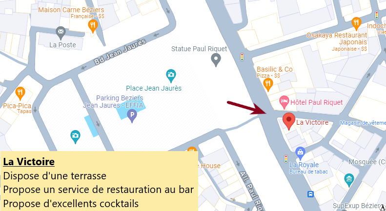 Patrice Julien (Fb) : Bistrot à l’ancienne, petit et très coquet avec une cuisinière qui propose chaque jour une cuisine généreuse concoctée avec amour. On peut y trouver les grands plats de la cuisine de bistrot qui est une espèce en voie de disparition. La clientèle d’habitués ne s’y trompe pas, le bouche à oreille fait boule de neige. Ancien restaurateur.