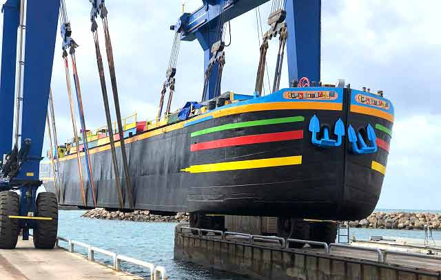 Construite en acier en 1952 à l’Arsenal de Toulon, le fond a été changé en 2002 et la dernière mise à sec est d’avril 2022. A cette occasion, il a fallu déposer les doublantes arrières et en poser de nouvelles en tôle de 6mm (travaux qui justifient l’augmentation du prix).