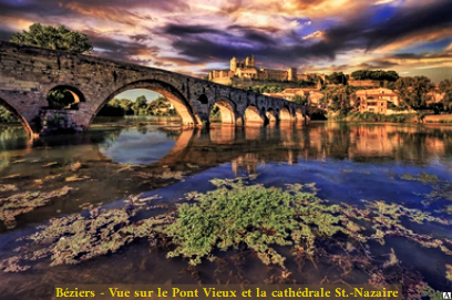 Cet ouvrage du XIIe s., sur une embase romaine, aligne ses 15 arches et 241m de long au-dessus de l’Orb. Il fut le seul pont de Béziers, unique passage sur le chemin de Marseille à Toulouse jusqu’en… 1858 ! Louis XI le vantait, parlant d’un pont « de grande ancienneté, somptueux et de grand édifice ». Classé Monument Historique en 1963.
