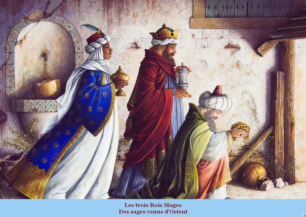 Au fil du temps, des écrits et des traditions populaires donnèrent de l’épaisseur à ces personnages venus d’Orient. Ainsi, d’Hommes Sages, ils devinrent des rois, répondant aux noms de Melchior, Gaspard et Balthazar… On leur attribua même au XVIème siècle une couleur de peau différente pour chacun : blanche pour Melchior, noire pour Balthazar et jaune pour Gaspard.