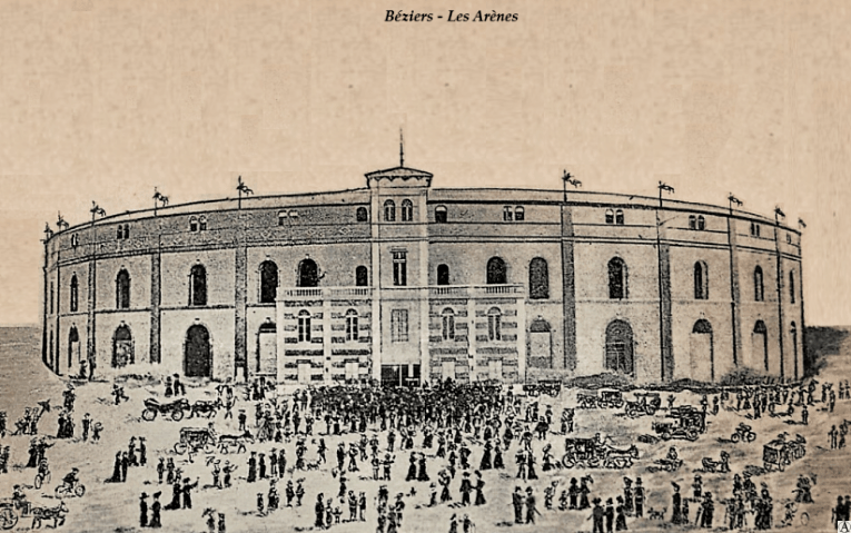 En 1896 est posée la première pierre des Arènes de Béziers, au lieu dit le “Plateau de Valras”, à l’initiative de plusieurs riches propriétaires désireux d’ancrer à Béziers les spectacles taurins. Edifiée sur le plan des arènes de la rue Pergolèse à Paris, dessiné par l’architecte Carlier, la construction monumentale de 52 mètres de diamètre, destinée à accueillir 15 000 spectateurs, connaîtra quelques retards.