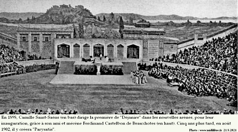 - 1898 : à l’initiative du mécène Castelbon de Beauxhotes, création de la tragédie Déjanire, créée par Camille Saint-Saëns, sur un livret de Louis Gallet.