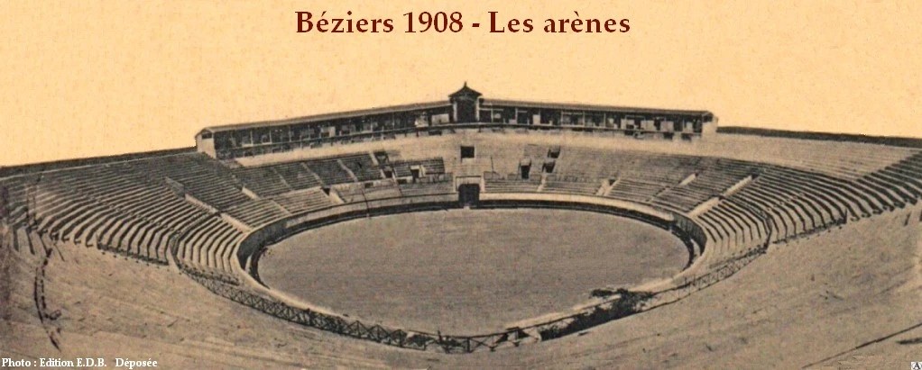 Car la ville de Béziers ne disposait plus des arènes après l’incendie le 6 septembre 1896, les travaux pour les nouvelles arènes de Béziers ont déjà commencé le 18 janvier 1897 pour s’achever en 1901 sur les plans des architectes Carlier, père et fils. Construites de briques et de pierres, avec des gradins concentriques et une piste circulaire de plus de 50 mètres de diamètre, les arènes constituent un des édifices les plus impressionnants de la ville.