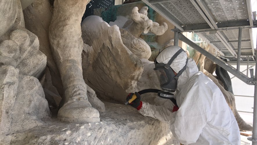 Le deuxième chantier a débuté ce mardi 11 septembre : la restauration du monuments aux morts, oeuvre du sculpteur Injalbert, du Plateau des poètes de Béziers. La restauration est assurée par l’atelier Jean-Loup Bouvier, spécialisé dans la réfection des sculptures, gypseries, staff et moulages, ainsi que la Socra, pour la partie bronze.