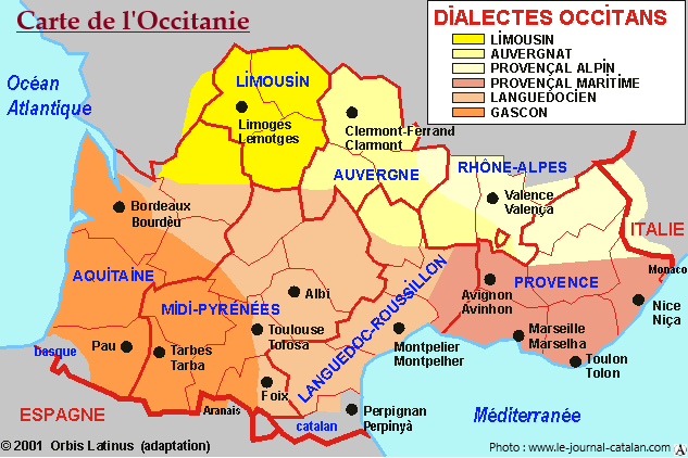 - 33 départements français répartis sur huit régions administratives (sur les 14 millions d’habitants de ces régions, environ 6 millions comprennent l’occitan sans le parler) ;