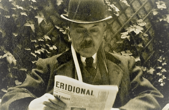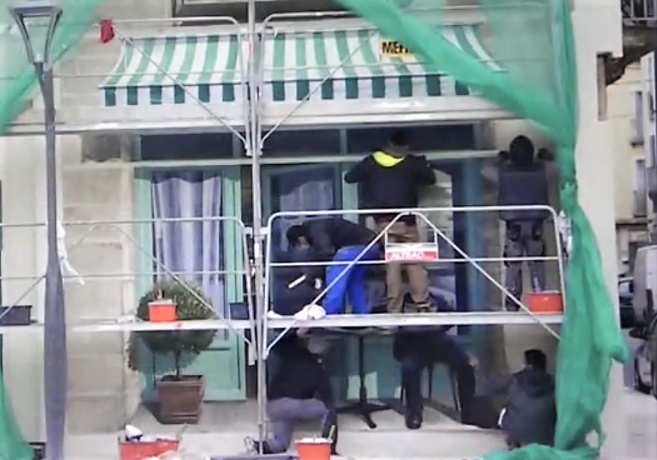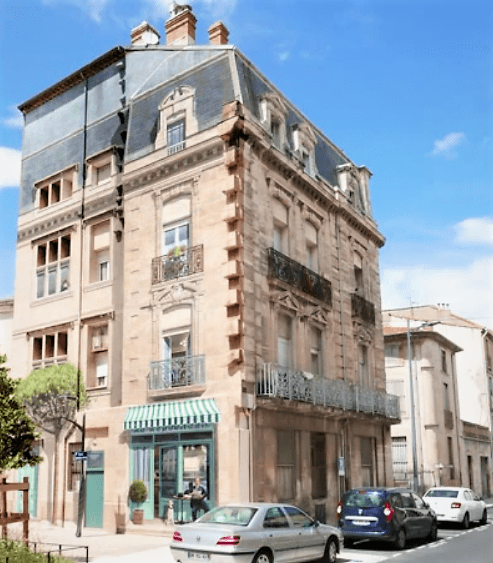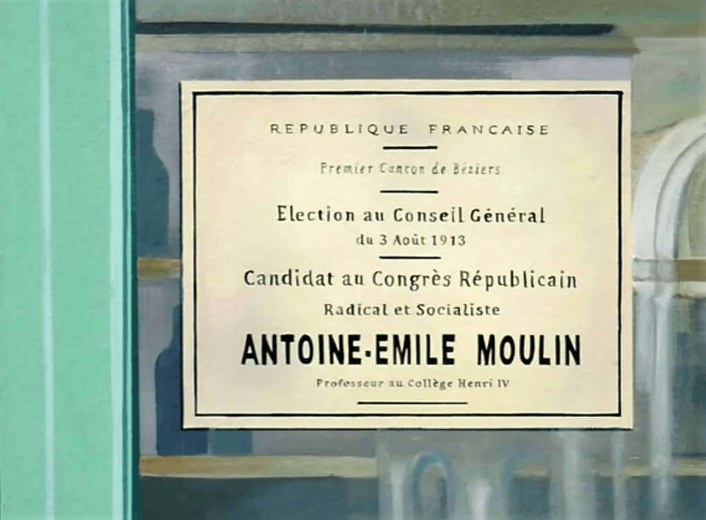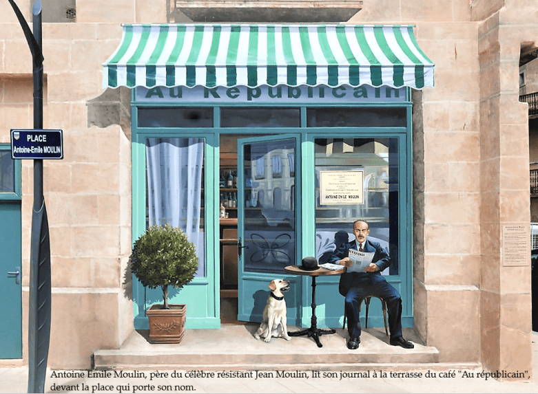 Au rez-de-chaussée, Antoine Emile Moulin (1857 – 1938), père du célèbre résistant Jean Moulin, lit son journal à la terrasse du café “Au républicain”.