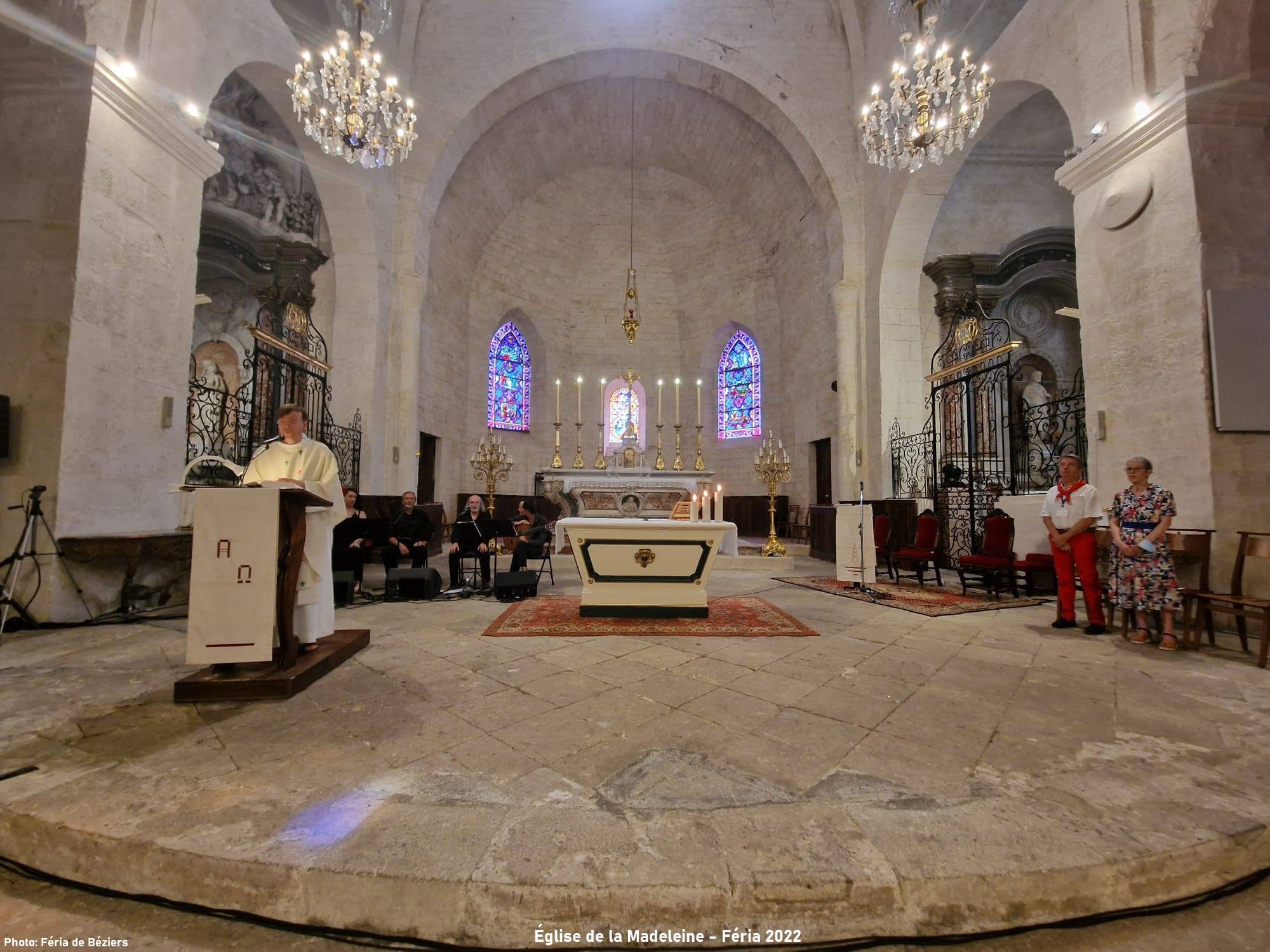 Entre la basilique Saint-Aphrodise, du premier évangélisateur de la ville et la Cathédrale Saint-Nazaire, siège du pouvoir épiscopal, La Madeleine a été l’église des Consuls et de la Cité, avec ses commerçants, ses artisans et ses professionnels libres.