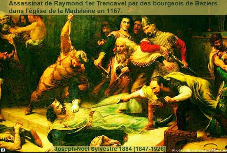 L’endroit est entrée dans l’histoire en 1167 quand les principaux bourgeois de la ville poignardèrent sur les marches du maître-autel Raymond Trancavel, vicomte de Béziers, et plusieurs personnes de sa suite. Quelques années plus tard, pendant la répression des Cathares (les purs en grec), 7000 Albigeois qui s’étaient réfugiées dans la Madeleine et dans le cimetière qui y est contigu, y furent passés au fil de l’épée par les croisés.