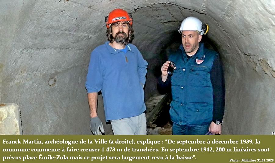 Les premières tranchées sont creusées par les troupes allemandes le 14 janvier 1943. Un contrat de la préfecture dd le 31 mai 1944 révèle la transformation en abris souterrain, c’est à dire deux tronçons de 40m. Cette construction faisait partie du système de défense passif de la ville.