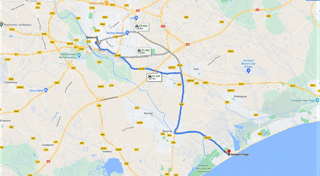 - Aéroport Béziers-Cap d’Agde: à 17 min. (12 km)