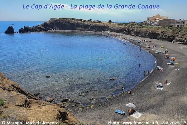 Enclavée entre la mer et de hautes falaises volcaniques, le sable noir fait sa particularité. En forme de croisant, c’ est la seule plage de sable noir. La pointe de sa falaise culmine à 21 mères, elle offre un point de vue dégagé sur le Cap d’Agde, le littoral et la mer, idéal pour les selfies.