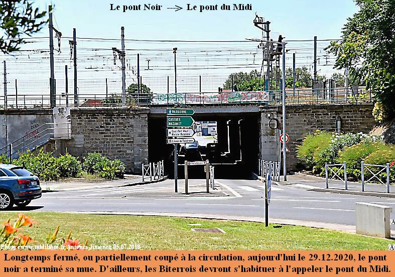 Longtemps fermé, ou partiellement coupé à la circulation, aujourd’hui le 29.12.2020, le pont noir a terminé sa mue. D’ailleurs, les Biterrois devront s’habituer à l’appeler le pont du Midi.