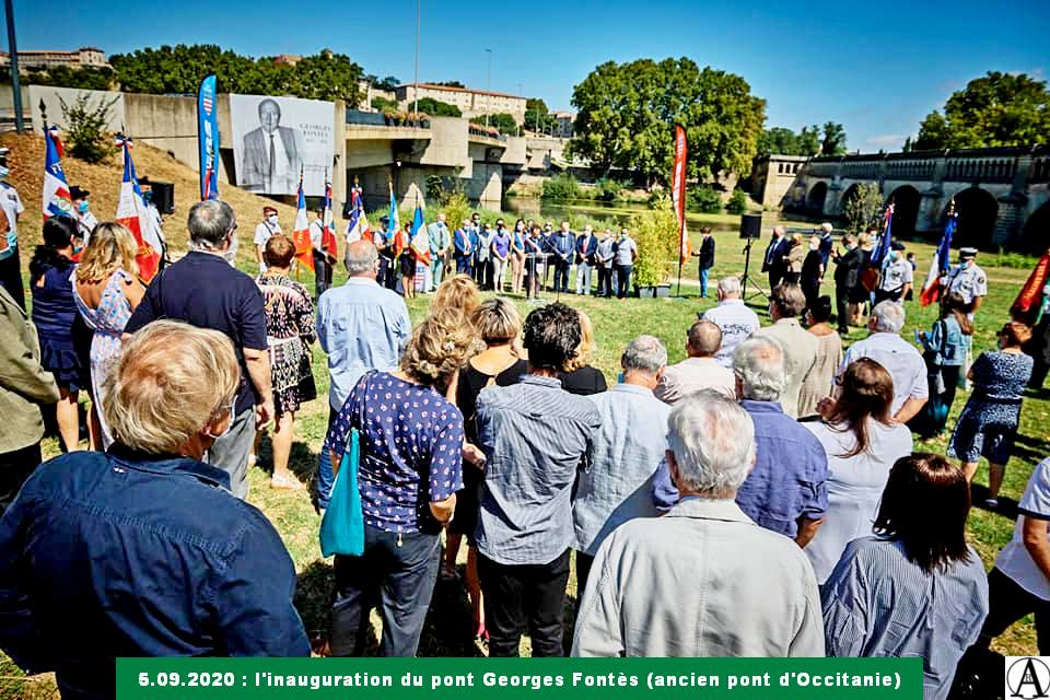 En présence de la famille de Georges Fontès, du maire de Béziers et d’Emmanuelle Ménard, député de l’Hérault, l’inauguration du pont Georges-Fontès avait lieu le samedi 5 septembre 2020 à 14 h.