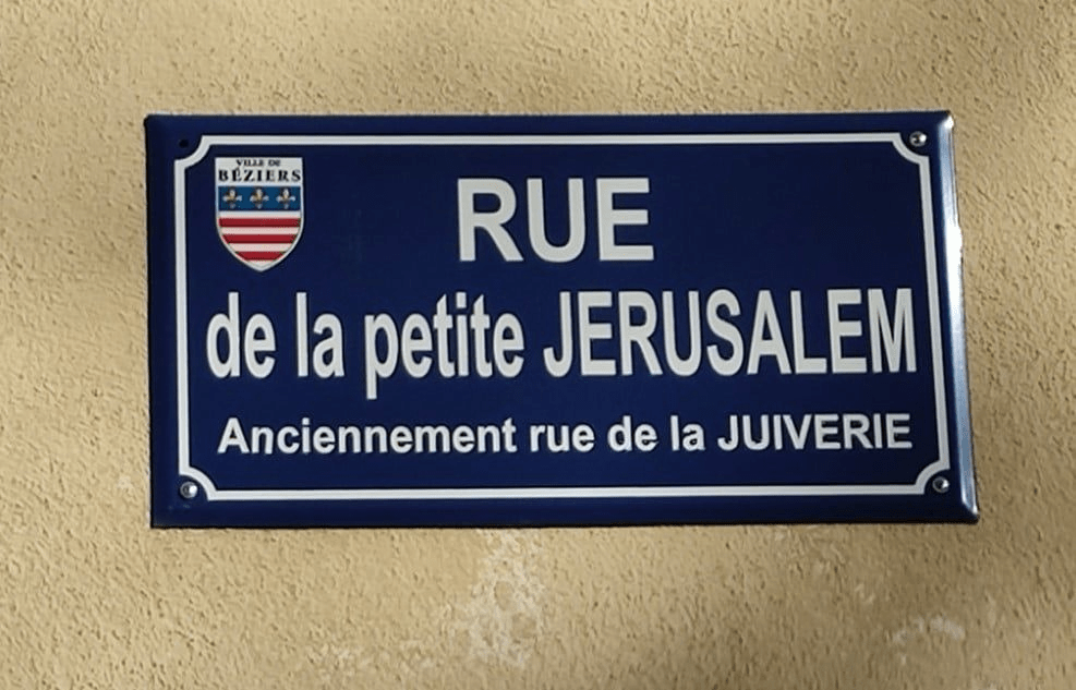 Le maire, Robert Ménard, vient de procéder à l’apposition d’une nouvelle plaque qui garde le nom de “Petite Jérusalem” tout en faisant mention de l’ancienne dénomination, “rappelant ainsi la présence historique de la communauté juive de Béziers. Nous saluons la portée symbolique de cette action.”