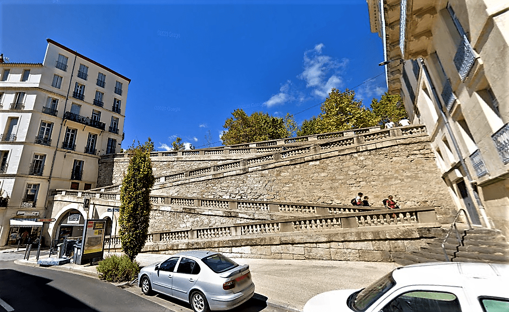 Achevée en 1854, la Rampe de La Citadelle, qui deviendra la Rampe des Poilus en 1918, est un immense mur de soutènement qui sert à relier, pour les piétons et les bestiaux, la place au faubourg des Terres Blanches, l’actuelle avenue Joffre.