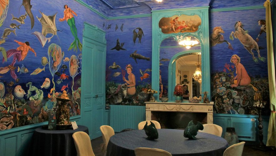 “La naissance des sirènes sont des fresques murales qui recouvrent les murs du salon. Elles représentent les femmes de la famille”, dévoile son fils. Accolée, la salle à manger du XVIIIe siècle accueille un musée de faïence sur les œuvres de Bernard Palissy du XVIe siècle à nos jours, collectionnée par Christine Viennet, céramiste renommée : “Les anciennes écuries accueillent la deuxième partie du musée de la faïence et des arts de la table”, explique son fils.
