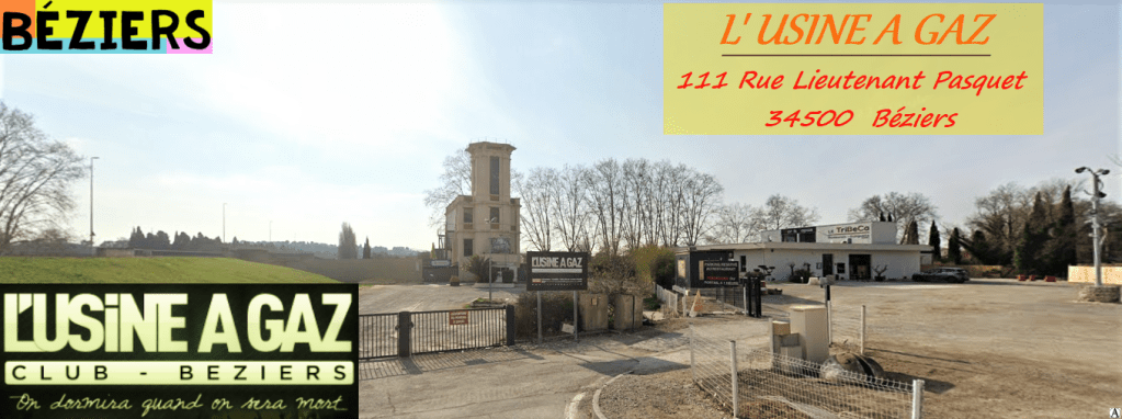 Laissée à l’abandon pendant plusieurs décennies elle était vouée à la démolition. Un Biterrois décide d’entreprendre avec accord de GDF de transformer ce lieu en salle de concert puis en discothèque. Dans cette ancienne Usine à gaz qui a conservé son nom, on peut maintenant s’y divertir et danser avec les nouveaux gérants. C’est toujours le Gaz de France qui est propriétaire des murs. Les deux salles sont ouvertes en fin de semaine et les veilles de jours fériés au grand plaisir des jeunes et moins jeunes.