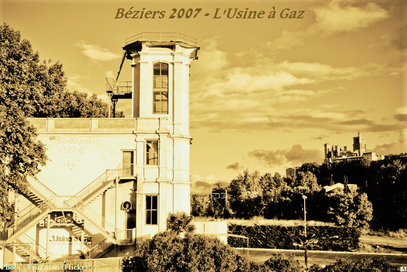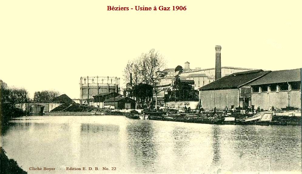 Au début du XXème siècle, les rues de Béziers étaient éclairées par des lampes à huile. Mais sur la ville planait déjà l’âme des gaziers d’autrefois. L’arrivée de l’éclairage au gaz des rues remonte en 1844 où la municipalité de la ville confie le projet de la construction et la gestion de l’ Usine à gaz située sur la rive gauche de l’Orb, à côté du pont d’Occitanie à une société lyonnaise. La construction dura 18 années car il fallut faire des tranchées pour les tuyaux du gaz et modifier dans certaines rues les lanternes à huile par des becs de gaz.